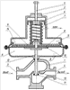 Эта конструкция включает корпус, входную и выходную полости, регулирующий орган-клапан со штоком и седлом, размещенным между входной и выходной полостями, и мембрану, зажатую между опорными дисками.