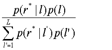 При заданных правдоподобиях наблюдений и наблюдении R* вычисляют вероятность нахождения в любом из L местоположений, используя правило Байеса (Bayes):