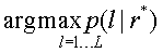 Алгоритмически это означает, что для наблюдения r* принимают во внимание нормированную гистограмму (например, Фиг.6), просматривая значения по всему диапазону местоположений l {1,2,…,L} и выбирая местоположение l с наибольшим значением .