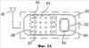 Кроме того, второй чип ИС 34 может быть перевернутым чипом, прикрепленным к поверхности второй карты 30 с чипом ИС или встроенным в нее. Вторая карта 30 с чипом ИС может быть гибкой печатной платой или жесткой печатной платой. Также в этом варианте осуществления принята гибкая печатная плата. В первом варианте осуществления второй чип ИС 34 прикреплен ко второй подложке 37, такой как многослойная печатная плата, или встроен в нее. Вторая карта 30 с чипом ИС имеет зону ввода/вывода сигналов 38. Зона ввода/вывода сигналов 38 содержит несколько штырьков 35 и несколько сквозных отверстий 36, предназначенных для прокладки проводов для соединения с первым чипом ИС 24 для передачи сигналов в переносное устройство, такое как мобильный телефон. Возвращаясь к фиг.3А, штырьки 35 обозначены символами “o”, а сквозные отверстия 36 – символами “×”. Например, зона ввода/вывода сигналов 38 содержит восемь штырьков 35 и четырнадцать сквозных отверстий 36, но этими количествами настоящее изобретение не ограничивается.