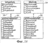Фиг.14 иллюстрирует типичную техническую модель/схему базы данных, которая может использоваться в связи с созданием записи ОСП и прослеживанием элементов расценки ОСП на уровне требования на закупку;