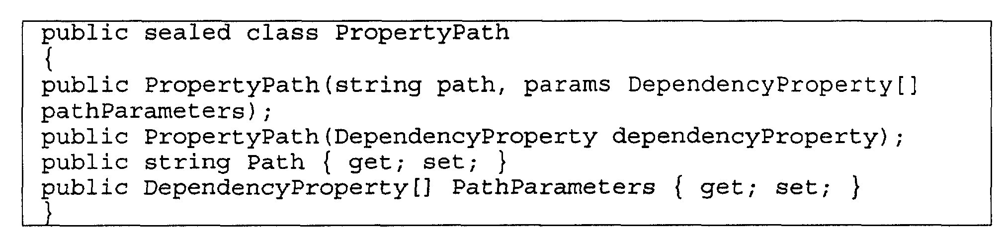 Патентные заявки США  10/693, 630 и 10/693, 822 являются теми из нескольких патентных заявок (присвоенных правообладателю настоящего изобретения), где, помимо прочего, описан один такой язык разметки, который, в общем случае, предназначен для упрощения разработки программ, а именно XAML (расширяемый язык разметки для создания приложений). В общем случае, автор программы использует команды XAML совместно с вызовами программных интерфейсов приложений (API) для размещения объектов в структуре данных графа сцены. Например, для построения пользовательского интерфейса программа на основе XAML обычно добавляет дочерние визуальные объекты к другим визуальным объектам для построения иерархического графа сцены, записывает списки команд, например геометрические данные, данные изображения и другие данные для вывода, и может задавать свойства преобразования, отсечения и непрозрачности на визуальных объектах.