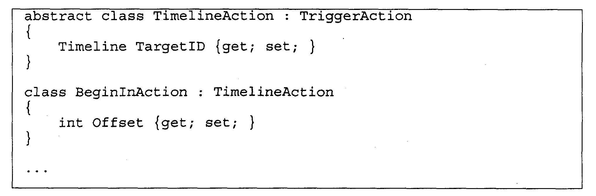 TimelineAction это абстрактный класс, имеющий подклассы для каждого из командных методов на TimelineClock: