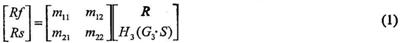 Параметры, упомянутые выше, в типичном случае используются в так называемой матрице смешивания для определения требуемых выходных сигналов. Например, выходные сигналы Rf (Правый передний) и Rs (Правый окружения) могут быть определены матрицей M смешивания смешивающего блока 43:
