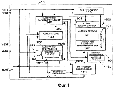 Область матрицы 101 EEPROM с 25-го адреса и далее является областью только для считывания, запись в которую запрещена; например, запись в нее невозможна после отправки изделия с предприятия-изготовителя.