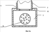 Во втором варианте изобретения, реализующем заявленный способ (вторую заявленную совокупность условий предлагаемого способа), объемный резонатор 2 монотрона, изображенный на фиг.3а и 3б, выполнен в виде отрезка прямоугольного волновода либо может быть выполнен в виде полого цилиндра (не показан на чертеже). Объемный резонатор 2 содержит расположенные соосно первую 6 и вторую 7 пролетные трубы, выполненные с заданным диаметром D. Пролетные трубы 6, 7 установлены в первой 8 и второй 9 торцевых стенках объемного резонатора 2, расположенных соответственно со стороны электронной пушки 1 и коллектора 3 монотрона. В пролетных трубах 6, 7 выполнены пролетные каналы 10, расположенные соосно соответствующим катодам электронной пушки 1 монотрона, причем в плоскости поперечного сечения каждой из пролетных труб 6, 7 центры отверстий пролетных каналов 10 расположены на одной окружности. Расстояние d между торцами пролетных труб 6, 7 выбирают исходя из заданного угла пролета , находящегося для данной конструкции в пределах от 1,9 до 2,1 , что соответствует условию отрицательной электронной проводимости, то есть одному из условий возникновения генерации СВЧ колебаний в объемном резонаторе монотрона. Первая пролетная труба 6 выступает над внутренней поверхностью первой торцевой стенки 8 объемного резонатора 2 на заданное расстояние H1, вторая пролетная труба 7 выступает над внутренней поверхностью второй торцевой стенки 9 объемного резонатора 2 на заданное расстояние Н2.