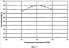 На фиг.7 приведена зависимость расчетного КПД (пунктирная линия) от величины ускоряющего напряжения U0 для монотрона, выполненного по второму варианту изобретения (на чертеже показаны только области наибольших значений КПД). Из чертежа видно, что характер зависимости КПД от напряжения аналогичен зависимости, показанной на фиг.6. При этом максимальное значение расчетного КПД 38% достигается при U0=22,2 кВ.