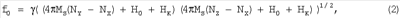 где NX – размагничивающий фактор вдоль длины полоски, NY – вдоль ширины полоски, NZ – перпендикулярно плоскости пленки. Из (2) следует, что f0 определяется Hk, Н0 и размагничивающими магнитными полями. Экспериментальные исследования частотных характеристик полосок на основе пермаллоя и Fe для совпадения направлений ОЛН и Н0 показали, что f0 достигает 4 и 11 ГГц соответственно.