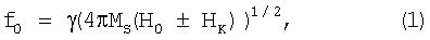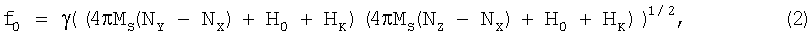 Высокочастотные свойства ферромагнитной пленки определяются проявлением ферромагнитного резонанса. Теоретические исследования ферромагнитных пленок показывают, что пик f0 ее частотной характеристики определяется ферромагнитным резонансом и равен