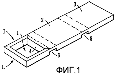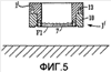 На ведущем конце L колодка содержит открытую рамку 1, которая отчасти меньше, чем размер полости С пресс-формы М. Рамка имеет открытое дно 4. По периферии нижней стороны рамки расположены отверстия 5, к которым может подаваться вакуум изнутри рамки. Если требуется, чтобы данная часть была больше, или же фольга является тяжелой, то в центре рамки может подаваться дополнительный вакуум за счет наличия промежуточных элементов рамки, оборудованных присутствующими вакуумными трубками. Следовательно, такая рамка может быть использована для подъема и переноса фольги или листа F1 на своей нижней стороне. На нижней стороне колодки может присутствовать прорезь 6 для образования пространства между рамкой 1 и необязательным аппликатором 2 крышки. Присутствие фольги или листа F1 закрывает дно отверстия рамки и фактически превращает рамку в открытый сверху контейнер или сосуд V для приема отмеренной аликвоты композиции 7 термоотверждаемой смолы и порошка. Данная композиция может быть распределена по площади рамки с помощью скребка или чего-либо подобного, или, в случае умеренно свободнотекущего порошка, с помощью встряхивания или вибрации, или может равномерно распределяться с помощью воронкообразной конструкции, возможно с широким носиком, передвигаемым над соответствующей областью контейнера.