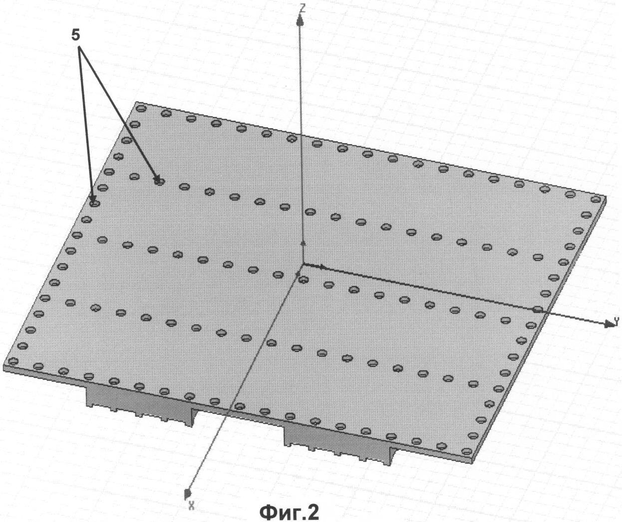 На Фиг.2 изображена лицевая сторона последующего волноводного корпуса, где 5 – отверстия, соответствующие штырям предыдущего волноводного корпуса, изображенного на Фиг.1.