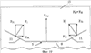 Фиг.8 изображает направление действия сил, приложенных ко вторичному элементу ЛАД, при его симметричном расположении относительно индуктора. Тяговое усилие, приложенное к центральной части каждого электропроводящего стержня, обозначено FTcp. Силы, приложенные к стержням, расположенным в боковых частях 10, обозначены F1 и F2. F1 и F2 разлагаются на тяговые усилия FT1 и FT2 и боковые усилия Fб1 и Fб2. Причем Fб1 и Fб2 равны и направлены встречно. Штриховой линией и позицией 15 схематично обозначен индуктор ЛАД.