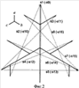 Принцип работы преобразователя (Фиг.1) иллюстрируется векторными диаграммами напряжений, представленными в виде амплитудно-фазового портрета напряжений фазных обмоток, составляющих вентильную обмотку, и векторами результирующих выпрямляемых напряжений (Фиг.2). Относительные числа витков фазных обмоток, при которых обеспечивается каноническое 16-пульсное выпрямление, приведены на Фиг.3, а обозначения частей фазных обмоток, необходимые для проведения схемотехнического анализа, приведены на Фиг.4.
