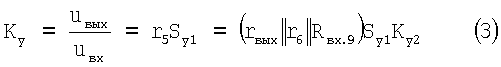 Если r4=r5, то i =0. Следовательно, от параллельно-балансного каскада 1 не требуется создавать дополнительное приращение тока в узле 5 за счет изменения входного дифференциального напряжения (между узлами 2 и 3). В этом случае Ку каскада существенно возрастает: