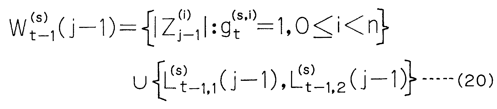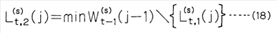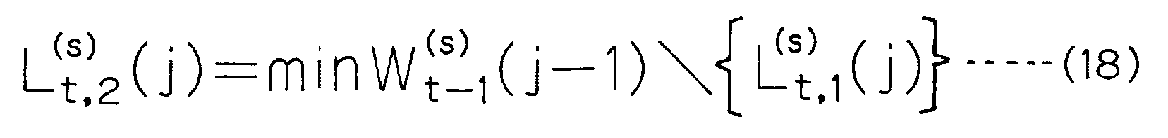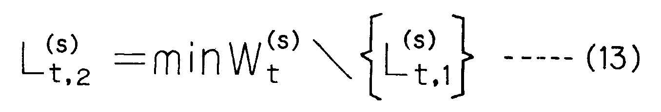 То есть Lt,1 (s)(j) в равенстве (17) является элементом с наименьшим значением среди элементов Wt-1 (s)(j-1), тогда как Lt,2 (s)(j) в равенстве (18) является элементом со вторым наименьшим значением среди элементов Wt-1 (s)(j-1). То есть из элементов Wt-1 (s)(j-1) элементы с наименьшим значением и со вторым наименьшим значением выбираются и удерживаются в регистре 61 следующей ступени.