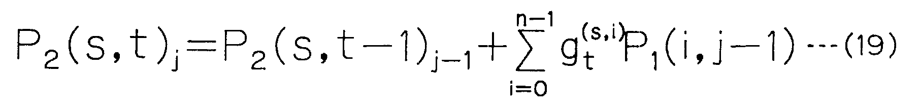 Подобная обработка выполняется для (s,t) по равенству (16). То есть с начальным состоянием (s,t)0 в момент 0 времени данные (s,t)j в момент j времени могут рассчитываться в соответствии со следующим равенством (21):