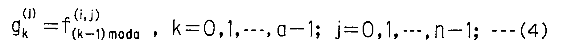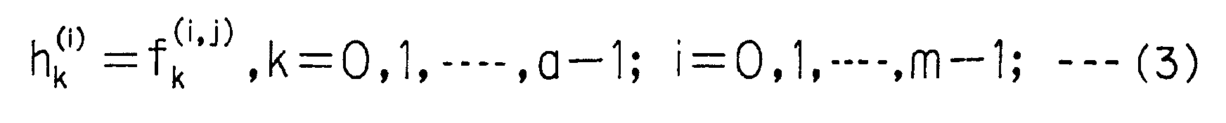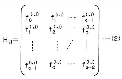 Обращено внимание, что Hi, j по равенству (1) обозначает циклическую матрицу axa, показанную следующим равенством (2):