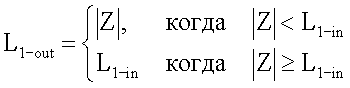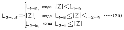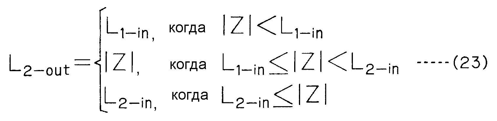 Со ссылкой на фиг.11, упрощенный блок 62 узлов обработки проверки для переменной включает в себя селектор 113 и компараторы 111 и 112. Логический элемент 114 ИСКЛЮЧАЮЩЕЕ ИЛИ принимает информацию, указывающую плюс или минус Z (самый старший двоичный разряд у Z) и P2-in. Компаратор 111 снабжается абсолютным значением Z (битами, иными, чем самый старший двоичный разряд у Z). Компаратор 112 снабжается абсолютным значением Z и L2-in. Селектор 113 снабжается абсолютным значением Z, L1-in и L2-in, выходными данными компаратора 111 и выходными данными компаратора 112.