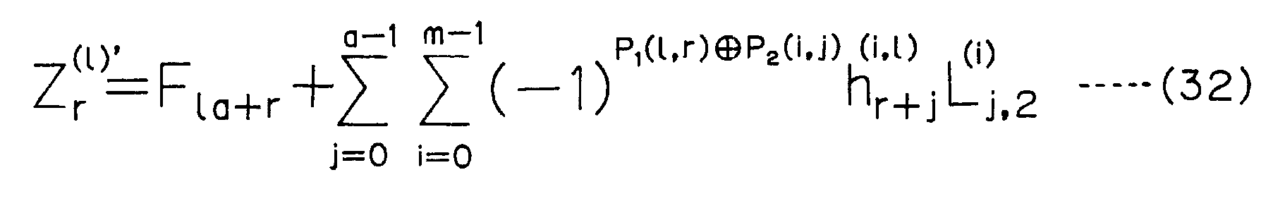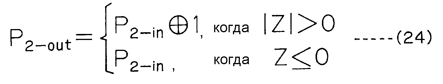 22. Устройство декодирования по п.20, в котором: упомянутый компаратор и упомянутый селектор удалены из упомянутого средства обработки переменной для проверки; при этом предусмотрены упомянутая схема исключающего ИЛИ, инвертор плюса и минуса и упомянутый сумматор; и при этом L2, P2, P1-in и Zin являются входными данными, a V1-out и P1-out являются выходными данными.