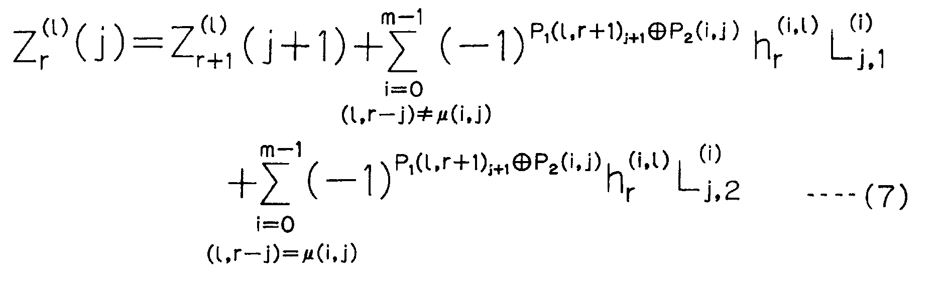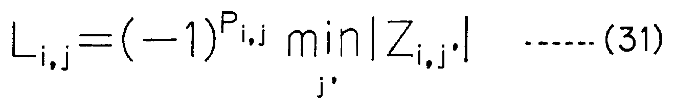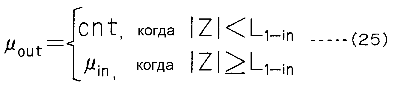 То есть блок 62 узлов обработки проверки для переменной выводит наименьшее значение из значений Z, рассчитанных до сих пор, в качестве L1-out через регистр 61 в блок 62 узлов обработки проверки для переменной следующей ступени. Когда значение L1-out непосредственно предыдущей ступени, введенное в качестве L1-in, стало наименьшим, как показано в равенстве (25), блок 62 узлов обработки проверки для переменной следующей ступени выводит в качестве out набор целого числа от 0 до n-1 в качестве счета и целого числа между 0 и a-1, соответствующего значению счета, синхронизированного с тактовыми импульсами.
