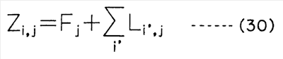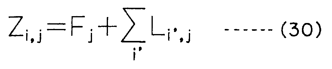 Суффиксы i и j обозначают целое число от 0 до M-1 и целое число от 0 до N-1 соответственно. Обращено внимание, что i представляет компоненты вектор-строк или вектор-столбцов проверочной матрицы, а j представляет компоненты вектор-столбцов или вектор-строк проверочной матрицы. Процессор 81 узла переменной обновляет сообщение переменной для проверки из сообщения проверки для переменной и принятых данных. Детали обработки узла переменной могут быть представлены следующим равенством (30):