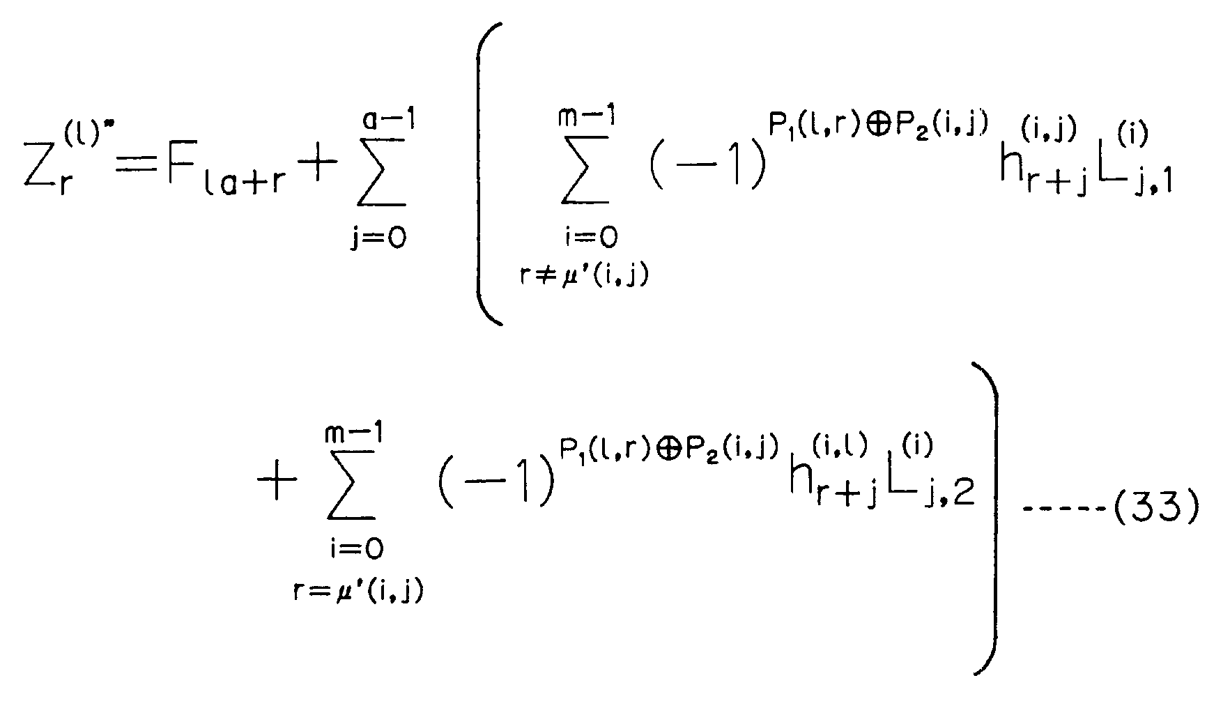 Как упомянуто выше, Lt,1 (s) и Lt,2 (s) обозначают элементы набора Wt (s) по равенству (14), имеющему наименьшее значение и второе наименьшее значение соответственно. Если обработка формирователем 11 сообщения переменной для проверки, показанная равенством (7), замещается следующим равенством (32), значение, рассчитанное этой операцией, хотя и зависимое от выбора проверочных матриц (равенства 1 и равенства 2), довольно хорошо аппроксимирует значение, рассчитываемое согласно равенству (7).