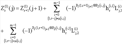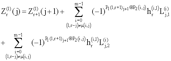 В вышеприведенном равенстве j обозначает целое число от 0 до N-1, i обозначает целое число от 0 до M-1, Pi,j обозначает 0 или 1, а j’ обозначает целые числа от 0 до N-1, не совпадающие с j, и покрывает все целые числа, элементы которых в вектор-строке проверочной матрицы, соответствующей i, являются 1.