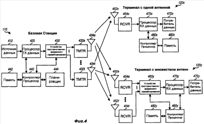 [0024] На Фиг.4 показана блок-схема базовой станции и двух терминалов.