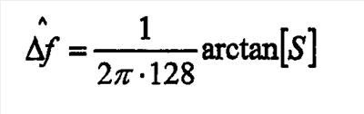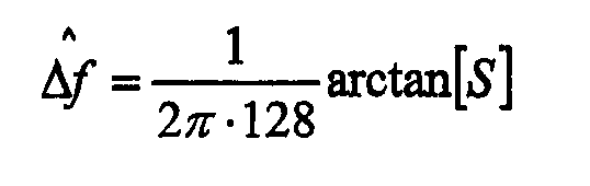 Как было отмечено выше, в течение процесса обнаружения сигнала, для вычисления частотного сдвига может быть использована однократная оценка. Она может быть основана на обнаружении контрольного сигнала TDM и задержанной корреляции, где нормализованная ошибка по частоте (относительно разностной частоты), в целом, вычисляется в конце обнаружения контрольного сигнала TDM из суммы задержанного выходного сигнала коррелятора, где значение S представляет собой накопленную сумму:
