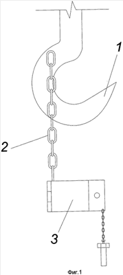 1. В верхней части крюка жестко крепится цепь, на конце которой жестко фиксируется зажим.