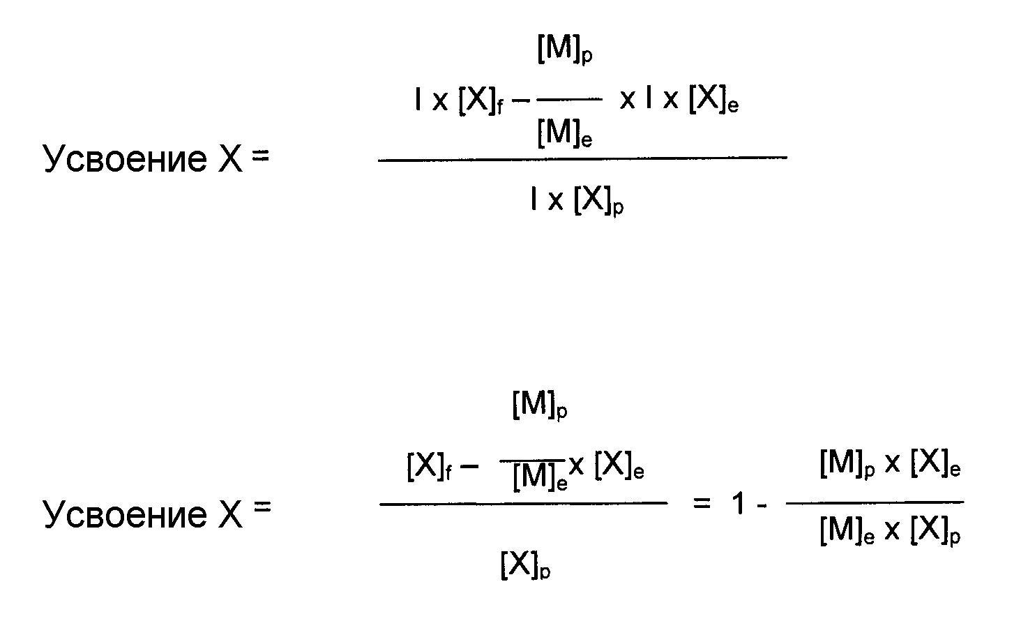 [Х]е: концентрация питательного вещества Х в фекалиях