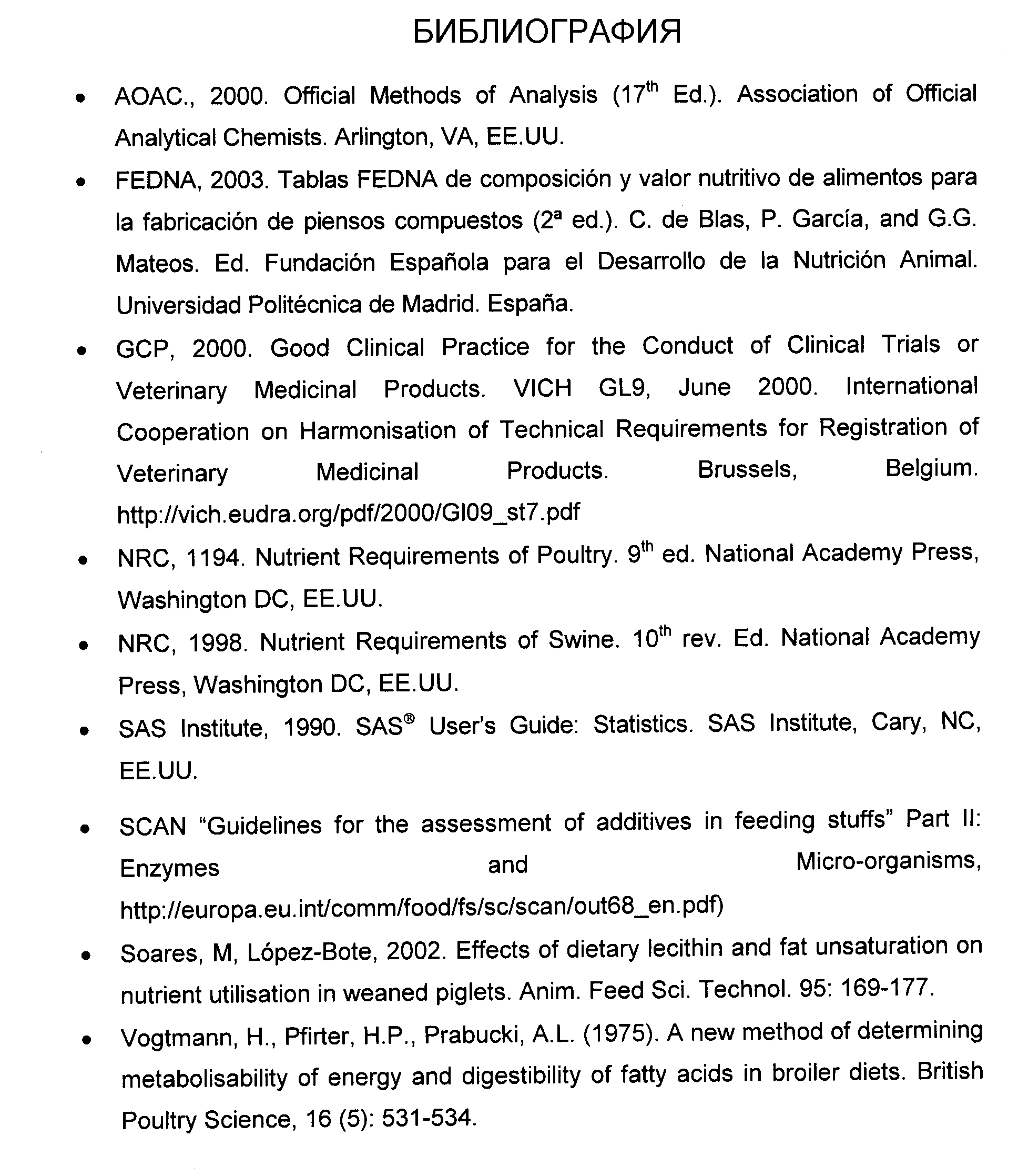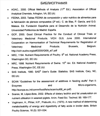 а) в течение всего периода исследования (с 28 по 61-дневный возраст) не было значительных различий между способами воздействия (обогащения) в отношении прироста веса и потребления. Это показывает, что использование кальциевого мыла дистиллята пальмовых жирных кислот (МСа+глицерин) может заменять соевое масло в качестве добавки жира в пищу поросят без влияния на продуктивный выход.