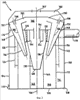 на фиг.3 показано сечение на виде с боку устройства циклонного разделения, являющегося частью одного из пылесосов, показанных на фиг.1 и 2;