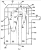 Третий модуль циклонного разделения состоит из четырех третьих циклонов 248, функционирующих параллельно. Каждый третий циклон 248 имеет верхний входной участок 252, который включает в себя входное отверстие 250, соединяющееся с камерой 246. Каждый третий циклон 248 также имеет участок 254 в форме усеченного конуса, направленный вниз от участка 252 входного отверстия и сообщающийся с закрытой камерой 256 через коническое отверстие. Камера 256 закрыта относительно камеры 242 с помощью пары стенок 270 (см. фиг.6). Каждый третий циклон 248 имеет выпускную насадку 258, расположенную на верхнем его торце и сообщающуюся с выходной камерой 260, имеющей выходное отверстие 262.