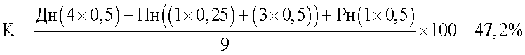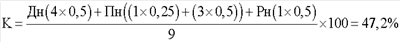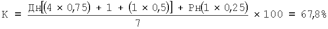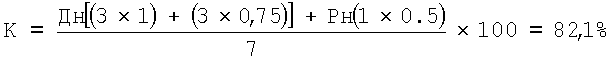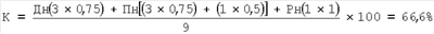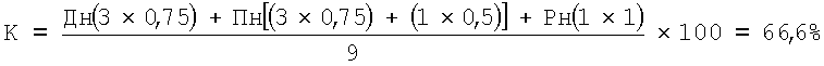 Способ позволяет каждый из типов функциональных нарушений рассматривать как в комплексе с другими нарушениями, так и изолированно, получая при этом различную степень ограничения жизнедеятельности, однако только комплексный учет всех типов позволяет объективно оценить степень ограничения жизнедеятельности как показатель истинного состояния ребенка, его возможности интегрирования в общество. Способ осуществляют следующим образом. Специалистами в данной области проводится балльная оценка состояния ребенка по четырем типам функциональных нарушений: двигательные сфера, психическое состояние, уровень психологического развития, речевая сфера, включающим заявляемые виды нарушений на основе предложенной оценочной шкалы (табл.1-3), которая отражает физические способности данного ребенка к нормальным показателям в данном возрасте. Вычисляют коэффициент (К) функционального состояния ребенка по предложенной формуле, величина которого показывает степень выраженности функциональных расстройств. Проведение аналогичной процедуры с вычислением величины (К) после проведенных реабилитационных мероприятий позволяет сделать вывод об эффективности реабилитации, оценить динамику реабилитации в целом и, при необходимости, по отдельному типу функционального нарушения скорректировать на основании полученных данных процесс реабилитации. Улучшение показателя К на одну оценочную шкалу дает возможность перевода ребенка в группу детей с меньшей степенью тяжести. Ниже приведены примеры осуществления предлагаемого способа Пример 1 Роман А., 4 года. Впервые обратился за помощью в Центр в сентябре 2005 г. по поводу ДЦП, правостороннего гемипареза. Ребенок из благополучной семьи. У 32-летней матери были срочные роды с длительным, безводным периодом и стимуляцией родовой деятельности. В год родители обратили внимание, что ребенок плохо опирается на правую ножку и берет предметы преимущественно левой рукой. Клиника нарастала, в 3-летнем возрасте ребенку был установлен диагноз ДЦП. Ребенок обследован: на компьютерной томографии головного мозга патологических изменений не выявлено, на ЭЭГ отмечалась периодически регистрируемая судорожная готовность. Судорожных приступов не было. С года по месту жительства (г.Партизанск, Приморский край) ребенок получал общепринятое при данном заболевании медикаментозное (ноотропы, церебролизин, витамины) и физиотерапевтическое (массаж, ЛФК, лазеротерапия) лечение. Воспитывался дома. При поступлении в Центр восстановительной медицины и реабилитации ребенок с трудом вступает в контакт, замкнут.Правая рука приведена к туловищу, согнута в локтевом суставе, супинация ограничена, активное отведение правого плеча – 45°, умеренный гипертонус мышц-сгибателей конечности. При ходьбе приволакивает правую ногу, правая стопа ротирована внутрь, в области правой голени и стопы имеются зоны пониженной чувствительности. По лестнице передвигается с трудом, держась за поручень. У мальчика стертая форма псевдобульбарной дизартрии, речь с трудом, но понятна окружающим. Умеренная задержка психического развития. Исходная оценка ограничения жизнедеятельности ребенка: 1. В=Дн, n=4 (мышечная сила, мышечный тонус, объем активных движений; вынужденное положение сегментов конечностей: bj=0,5; нарушений координации движений и г