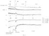 Типичный пример отсутствия какой-либо динамики ST у больных с отрицательным прогнозом приведен на фиг.3, 4. Исходно имеет место элевация ST в отведениях V1-V3, пика увеличения элевации не регистрируется. Снижения ST не отмечается (на фиг.3 приведен график за первые 7 часов наблюдения).
