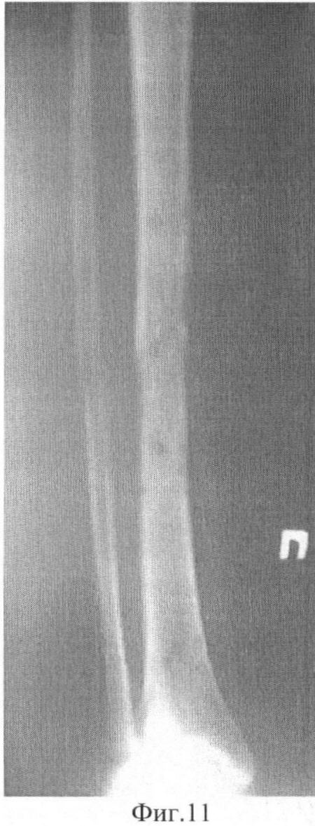 Фиг.11 Фоторентгенограммы больного после снятия аппарата внешней фиксации: прямая проекция;