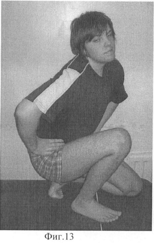 Фиг.13 Фотографии больного после снятия аппарата внешней фиксации: вид сбоку и функция в смежных суставах;