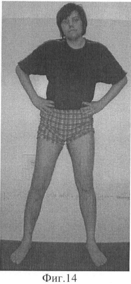 Фиг.14 Фотографии больного после снятия аппарата внешней фиксации: вид спереди;