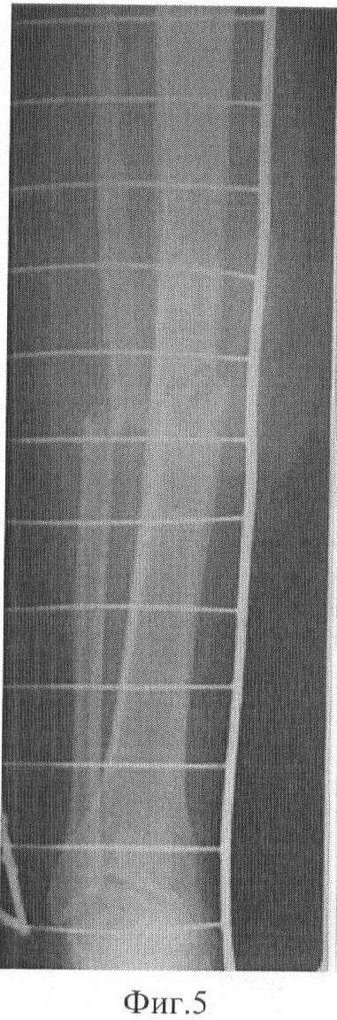 Известен способ остеосинтеза аппаратом Илизарова (Хрупкин В.И. Метод Илизарова в лечении диафизарных переломов костей голени / В.И.Хрупкин, А.А.Артемьев, В.В.Попов, А.Н.Ивашкин. – М.: ГЭОТАР-МЕД, 2004. – 96 с.). Согласно данному способу в крайних (базовых) опорах проводят базовые чрескостные элементы (Фиг.1), а в опорах, расположенных вблизи перелома (репозиционно-фиксационные опоры), – репозиционно-фиксационные чрескостные элементы, при помощи которых сопоставляют костные фрагменты.