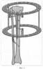 1. громоздкость аппарата внешней фиксации до выполнения его модульной трансформации (аппарат состоит из трех-четырех опор, одна из которых представляет собой 2/3 окружности, остальные – кольцевые);