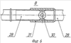 Вертикальные стойки 9 соединены между собой в продольном направлении расположенными одна над другой горизонтальными тягами 28 и 29, выполненными из двух частей, соединенных друг с другом шарнирами 30. Для предотвращения выламывания тяг их соединение в рабочем положении фиксируется элементами 31 и 32, выполненными в виде перемещаемых по резьбе вдоль тяг и охватывающих их трубок (фиг.6). В этом случае тяги выполнены из трубки меньшего диаметра. Нижняя тяга 29 для повышения устойчивости стеллажа в рабочем положении соединена с вертикальной стойкой 9 шарнирно двумя подкосами 33. Соединение выполнено аналогично соединениям других подкосов.
