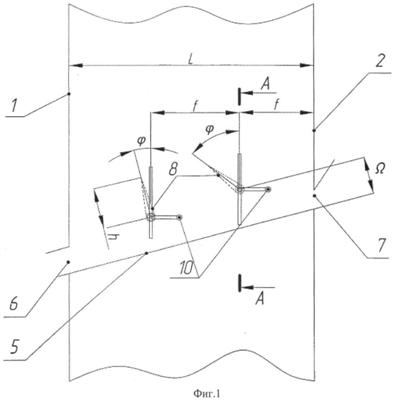 Расстояние f от передней стенки 1 до первого поворотного барьера и между соседними барьерами удовлетворяет соотношению <(f-h·sin )<0,751.
