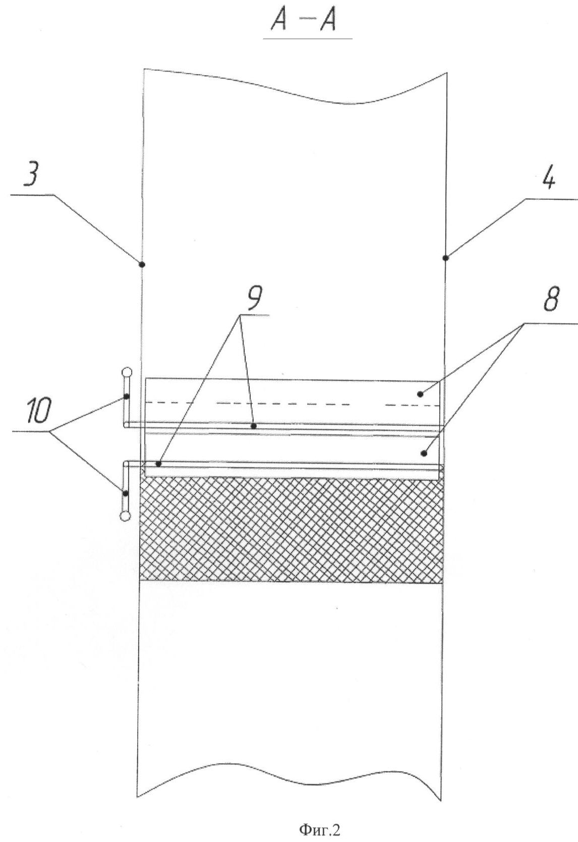 Сущность изобретения поясняется чертежами, где на фиг.1 представлен вертикальный разрез канала вдоль направления движения обрабатываемого материала; на фиг.2 – вертикальный разрез канала, перпендикулярный плоскости фиг.1.