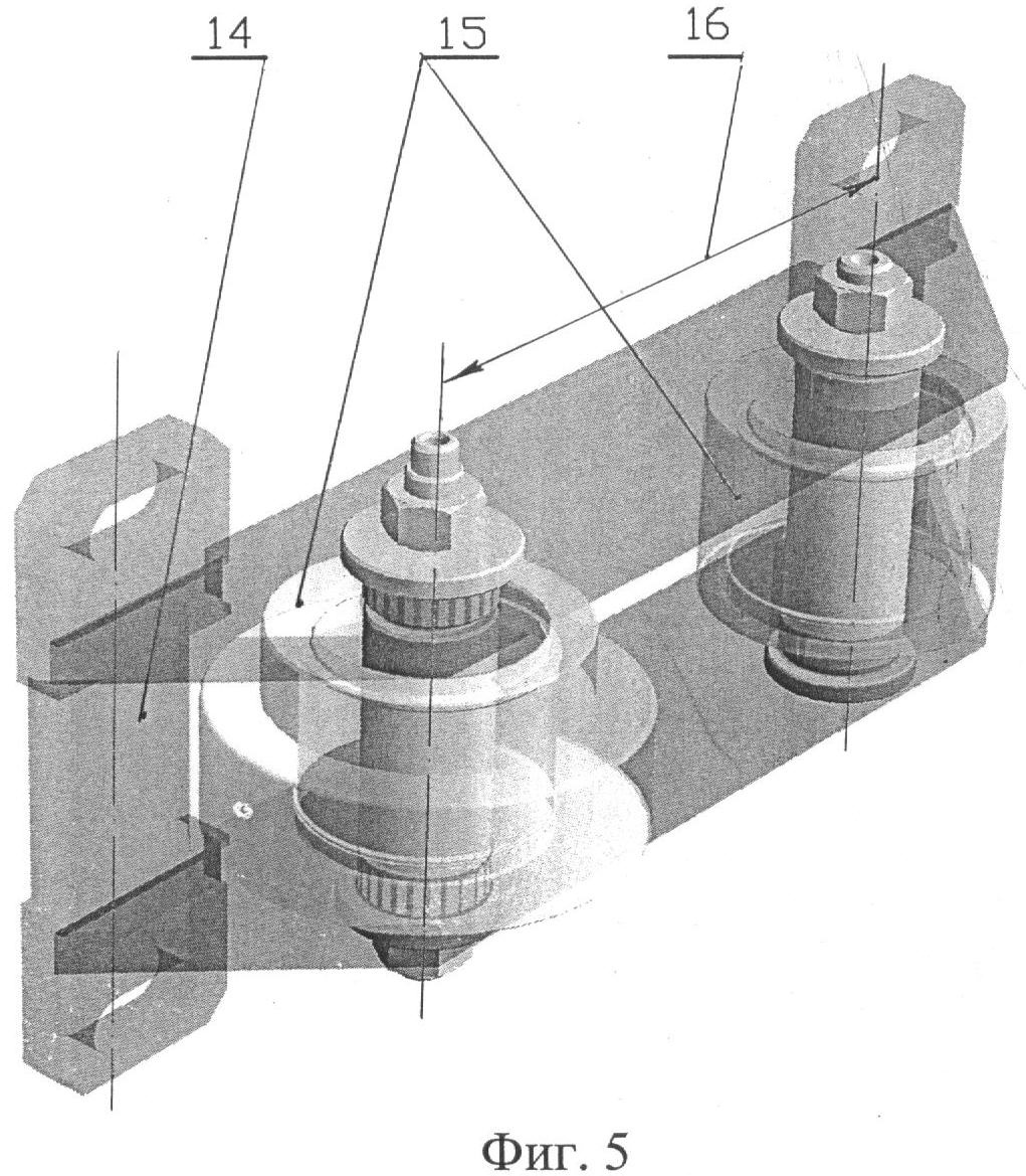 Данные задачи решаются в заявленном прокатном стане для получения опалубочного профиля холодным редуцированием из полой заготовки, содержащем накопитель, рольганг подачи, станину с установленными на ней и расположенными друг за другом клетями, объединенными в блоки, рольганг-сбрасыватель, привод стана, выполненный в виде ряда отдельных кинематических цепей с индивидуальными источниками крутящего момента, и пульт управления, который снабжен дополнительными навесными вертикальными клетями с формующими роликами, при этом один из формующих роликов установлен с возможностью регулирования межцентрового расстояния между ними, а каждая клеть – закрепленными на станине стана стойками, связанными посредством стяжек, при этом каждая стойка выполнена в виде прямоугольной в сечении направляющей с Т-образным пазом на боковом торце для установки рабочих валков и навески с возможностью регулирования дополнительных навесных вертикальных клетей, а привод стана выполнен с возможностью передачи крутящего момента равномерно и симметрично по клетям каждого блока клетей относительно центральной ведущей клети блока посредством линейного устройства, при этом стан снабжен четырьмя блоками клетей, по пять клетей в каждом блоке, а каждый блок клетей снабжен индивидуальным приводом, и навесная вертикальная клеть выполнена с возможностью регулирования ее положения относительно оси профилирования в вертикальном и горизонтальном направлениях.