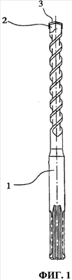 стержень 1 (см. Фиг.1) и головку 2 бурового сверла на упомянутом стержне. Стержень 1 и головка 2 бурового сверла не должны быть обязательно выполнены за одно целое. Однако вообще их выполняют за одно целое для исключения проблемы передачи сил от первого к последней.