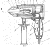 Подвижная и неподвижная рукоятки 14 и 11, внешняя оболочка 6, стакан 10 и съемный кожух 7 изготовлены из вибро-звукопоглощающего материала.