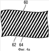 На фиг.4 (а) изображен первый фрагмент 60, для которого соответствующая печатная форма глубокой печати содержит группу параллельных гравированных линий, интервал между которыми больше ширины линии для гравированных линий. В данном примере реализации выполнены, например, при глубине гравировки 15 мкм гравированные линии шириной около 30 мкм с интервалом 60 мкм. В результате этого на данном изображении будут сравнительно светлые фрагменты участка, которые кажутся для невооруженного глаза полностью пропечатанными, а при наблюдении при помощи лупы или микроскопа будет видна структура, изображенная на фиг.4 (а), содержащая группу параллельных гравированных линий 62 и лежащих между ними параллельных белых линий 64.