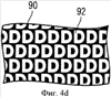 Гравированные линии печатной формы не обязательно должны быть прямыми, что проиллюстрировано на фрагменте 80, представленном на фиг.4 (с), где изображены две пересекающихся группы 82 искривленных прямых и ограниченные им белые участки 84.