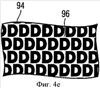 Белые участки также могут иметь форму скрытого элемента информации или строки символов, которые можно обнаружить лишь при надлежащем увеличении. Лишь в качестве примера фрагменты 90 и 94 фиг.4 (d) и (е) иллюстрируют простые варианты такого конструктивного исполнения, на которых белые участки в форме буквы «D» образуют информацию в виде позитивного изображения (номер позиции 92, фиг.4(d)) или информацию в виде негативного изображения (номер позиции 96, фиг.4(е)). Здесь различные тона также могут быть заданы при помощи задания ширины линии гравированных линий и/или промежутка отдельного информационного элемента (здесь – буквы «D»). Этим способом в изображение, разумеется, также могут быть введены существенно более сложные информационные элементы.